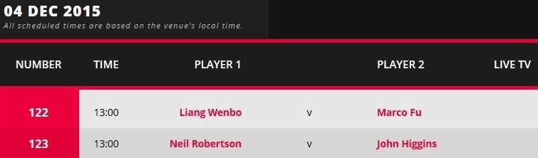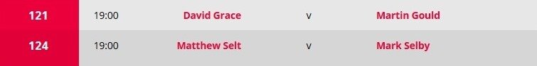 – Matthew Selt, cuyo mentor es el grandísimo Stephen Hendry, llegaba a esta ronda sin acabar de estar satisfecho con su juego (tal y como declaraba pocos días atrás) y donde iba a tener un rival muy duro: el número uno del mundo, Mark Selby. Un Selby que, a excepción de su partido de tercera ronda contra Jamie Jones, había venido haciendo un gran snooker.