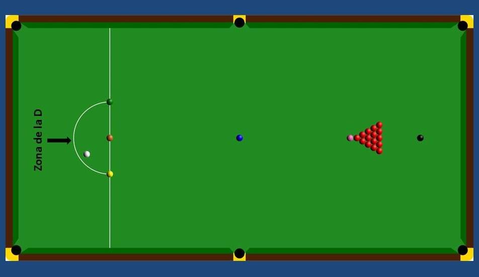 La bola rosa se coloca a mitad de distancia entre la banda corta y el centro de la mesa.