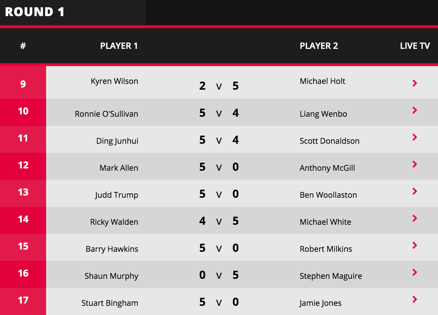 Ronnie O’Sullivan v Michael Holt