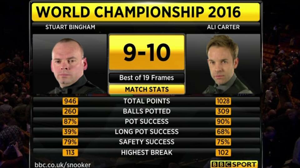 Allister Carter, segundo jugador en clasificarse para los octavos de final, Carter eliminó al actual campeón del mundo, Stuart Bingham.