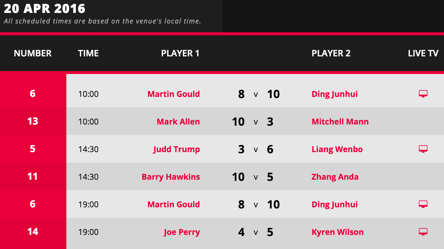 http://livescores.worldsnookerdata.com/Matches/Index/13868/world-championship