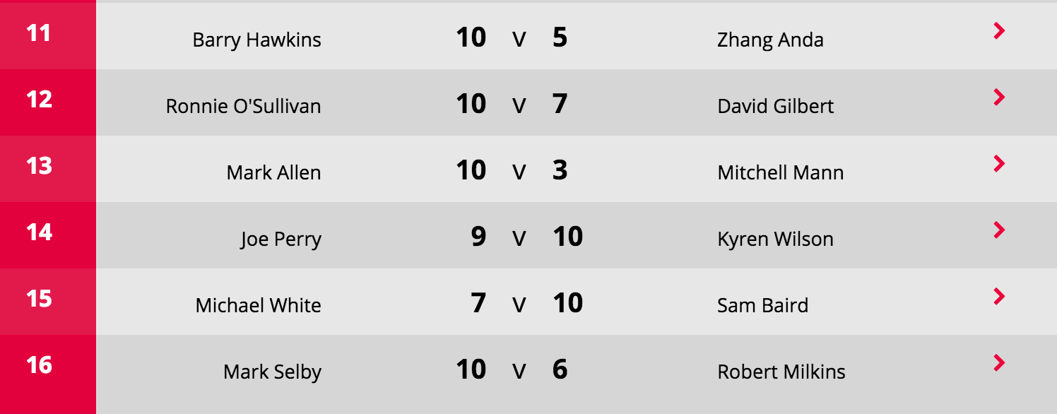 Octavos de Final (13 ganadas) R.O’Sullivan v B.Hawkins