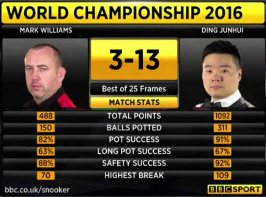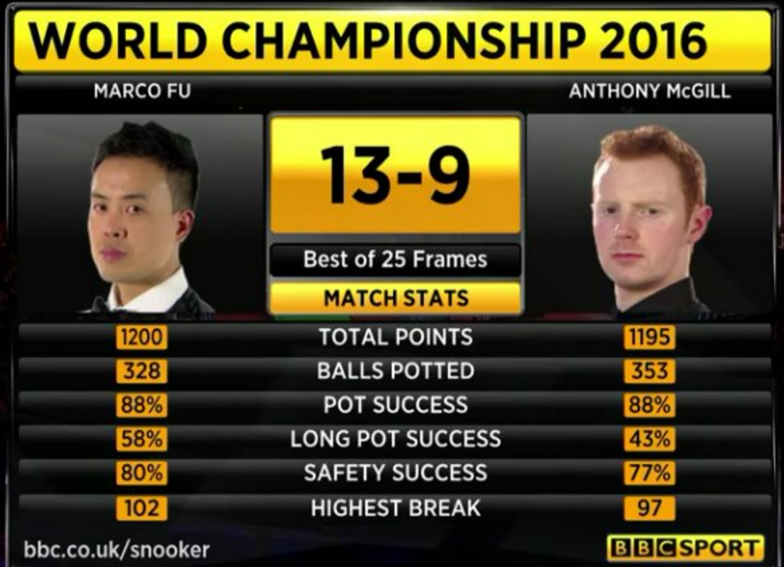 | 2013 | 18–12 | 2012/13 | Crucible Theatre, Sheffield | ||