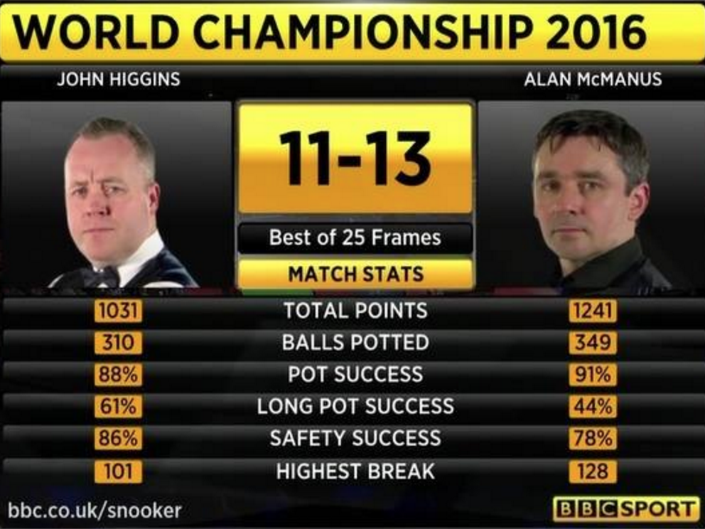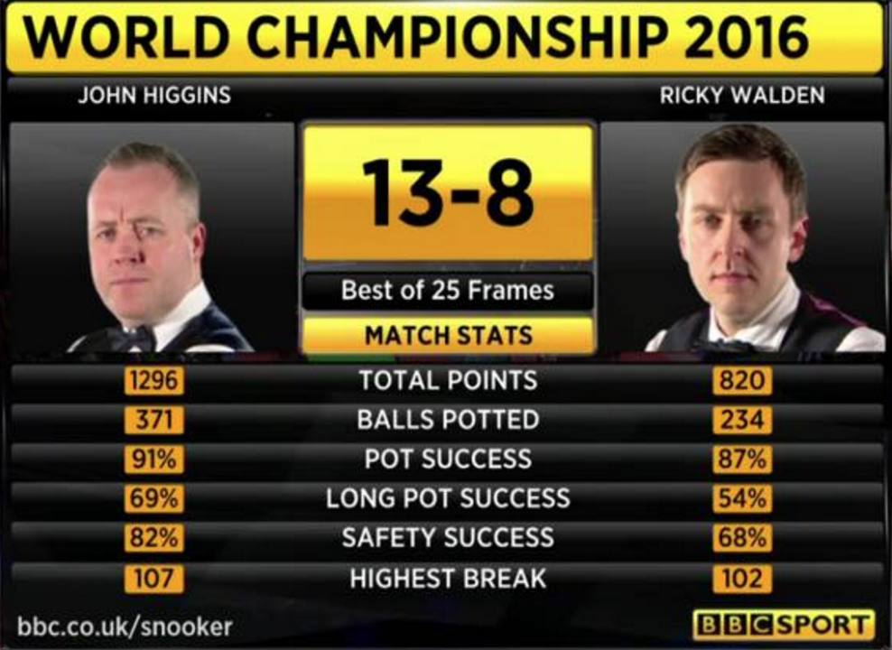 John Higgins pasa ronda con unos números que hablan por si solos: