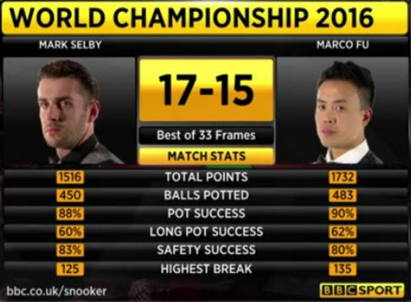 | 2015 | 18–15 | 2014/15 | Crucible Theatre, Sheffield |